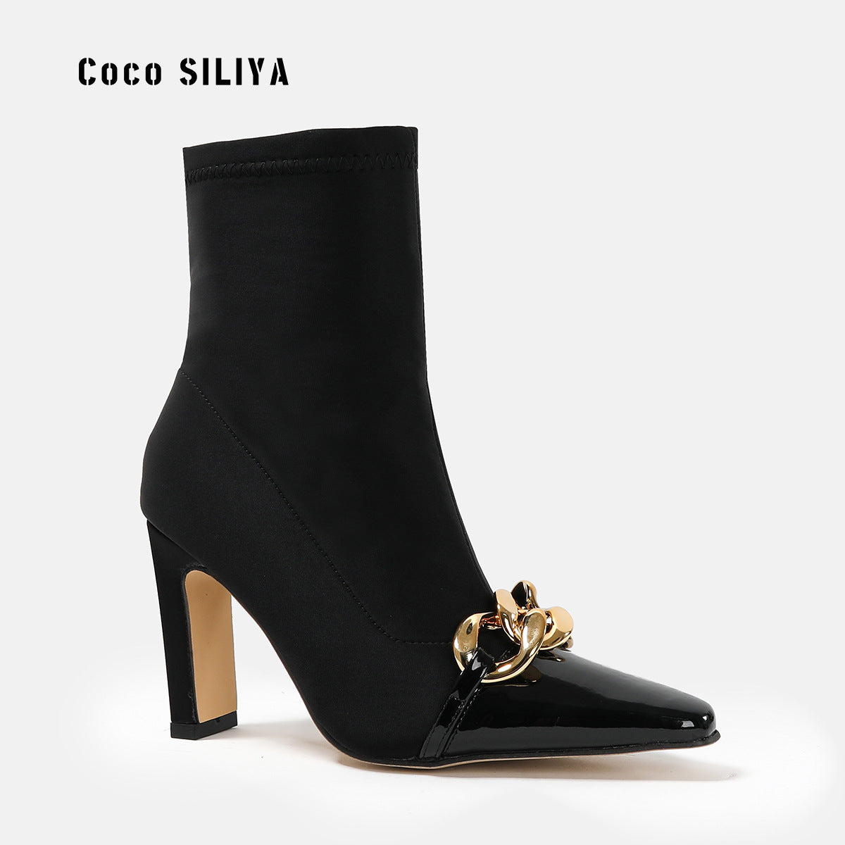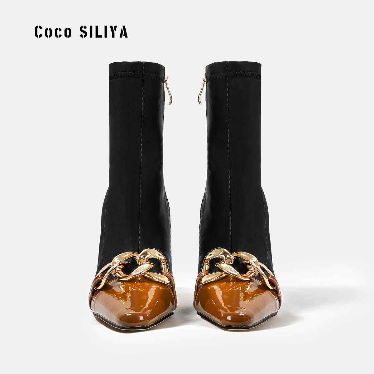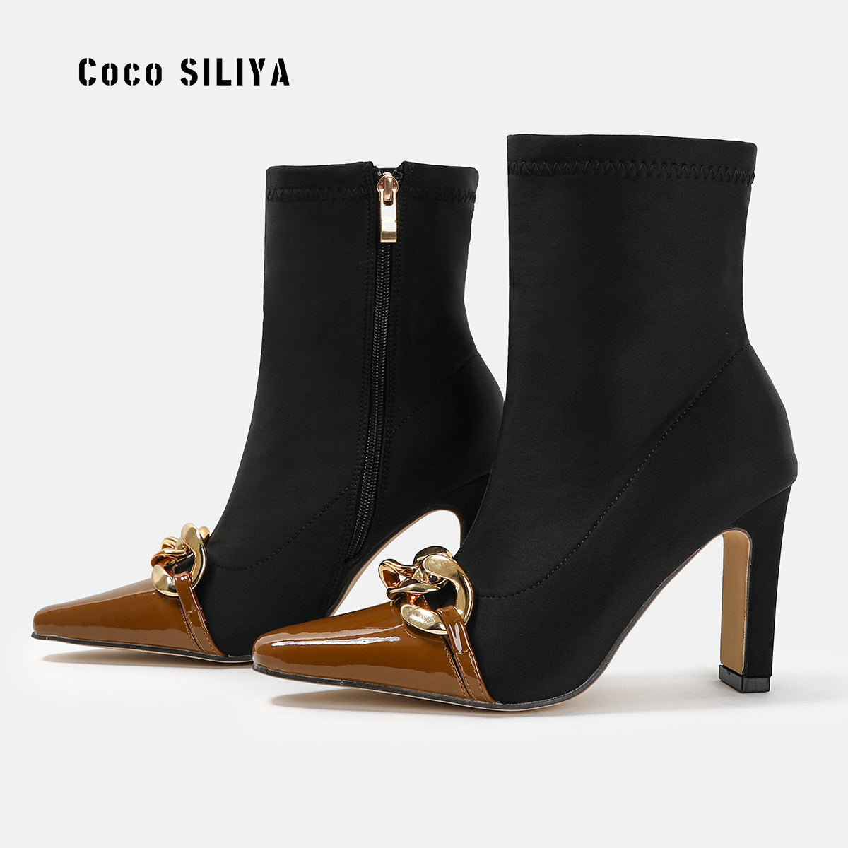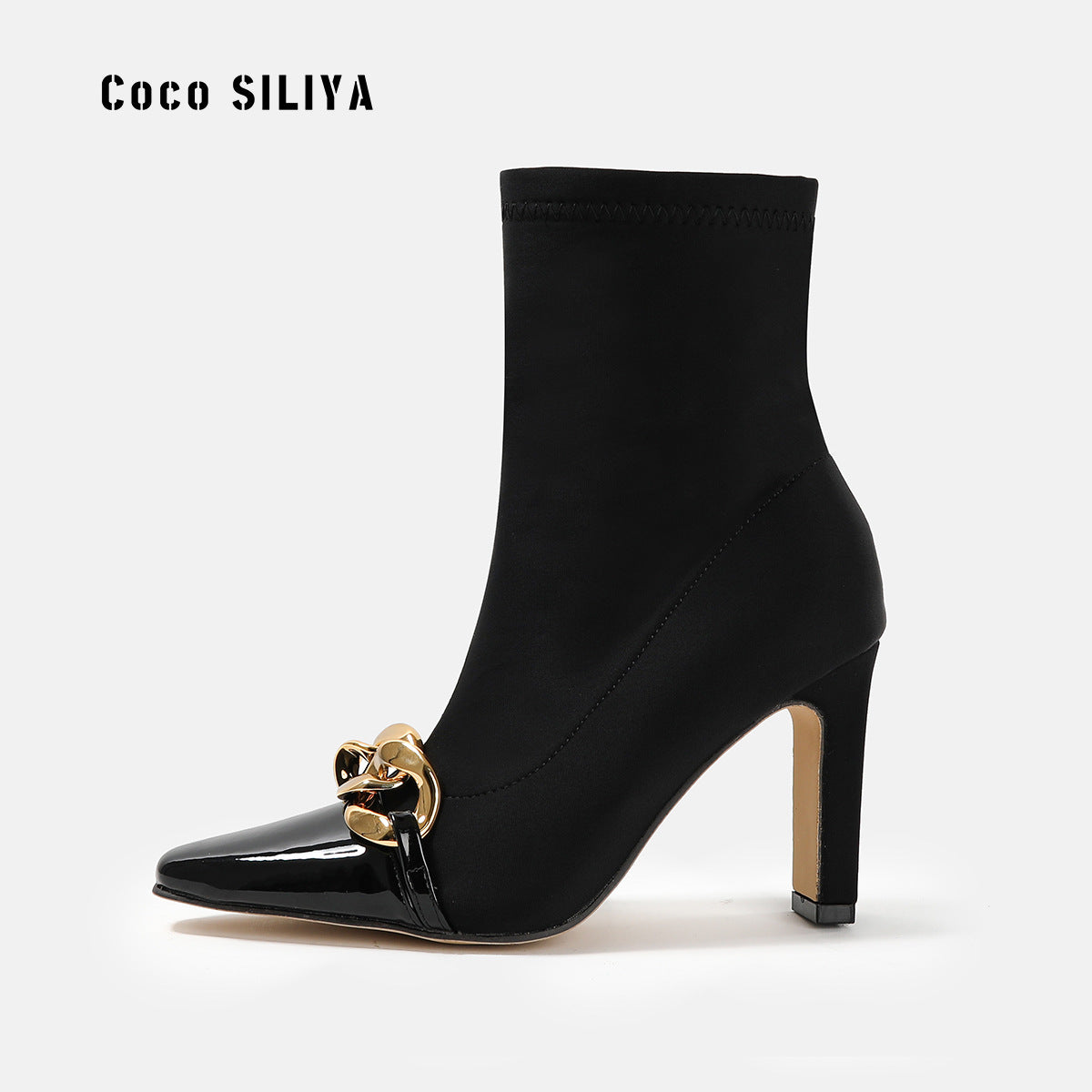 Autumn and Winter New Short Boots Women's Pointed Toe High Heel Thick Heel Medium Volume Martin Boots Large Size Boots