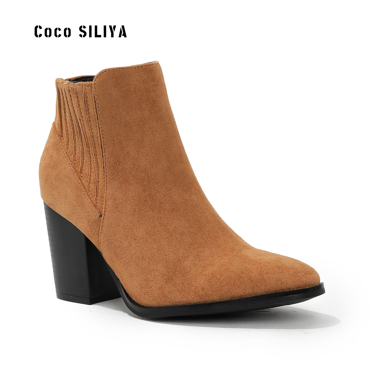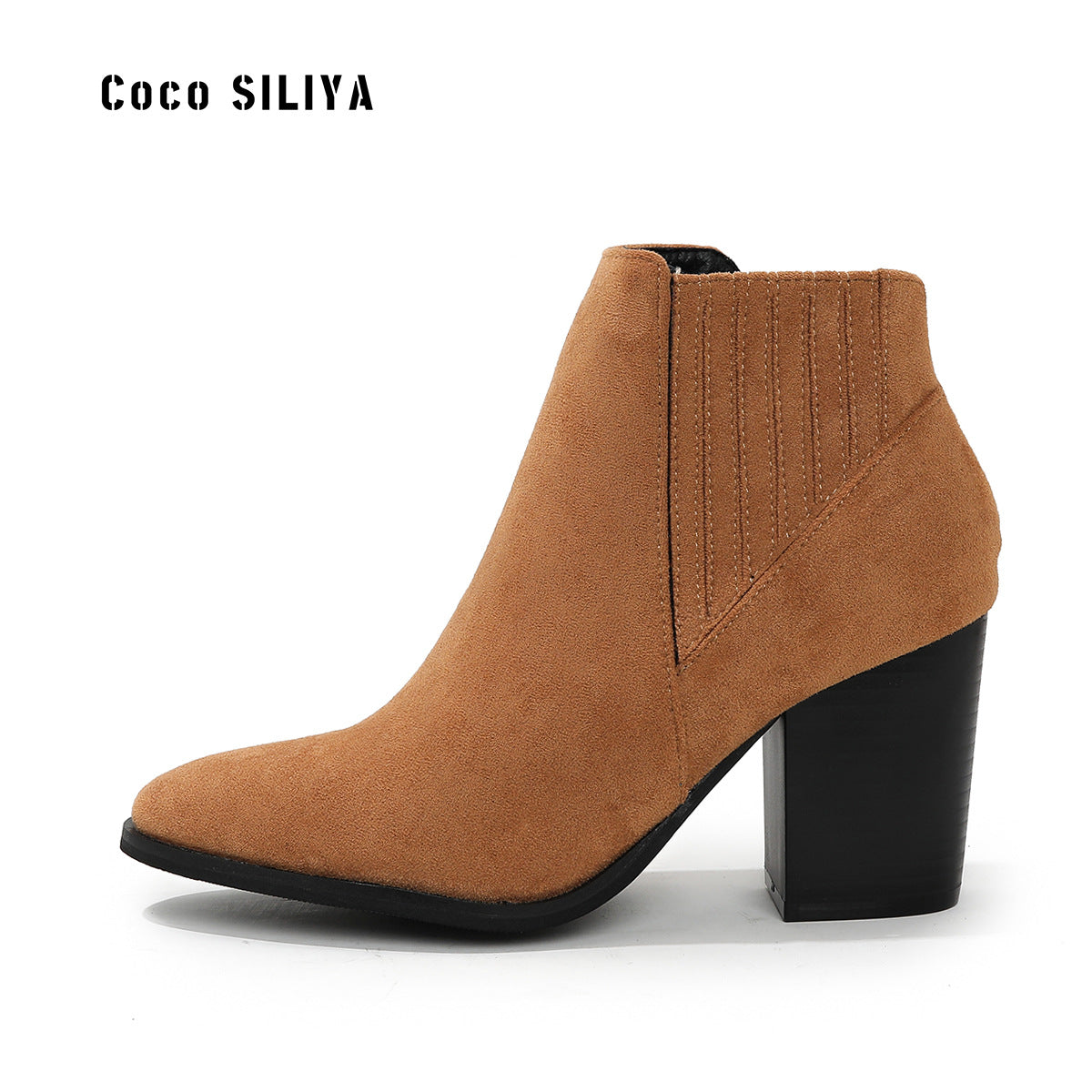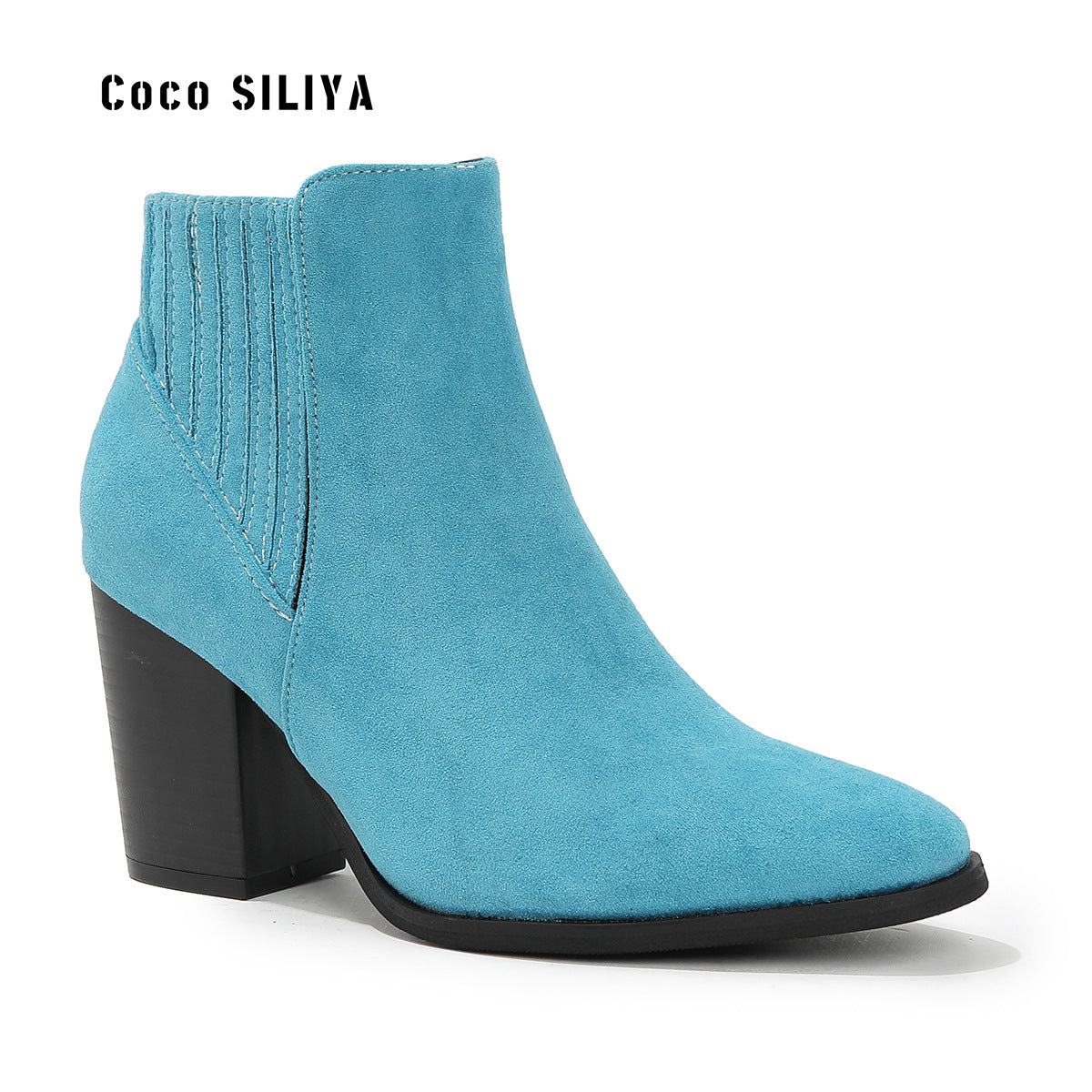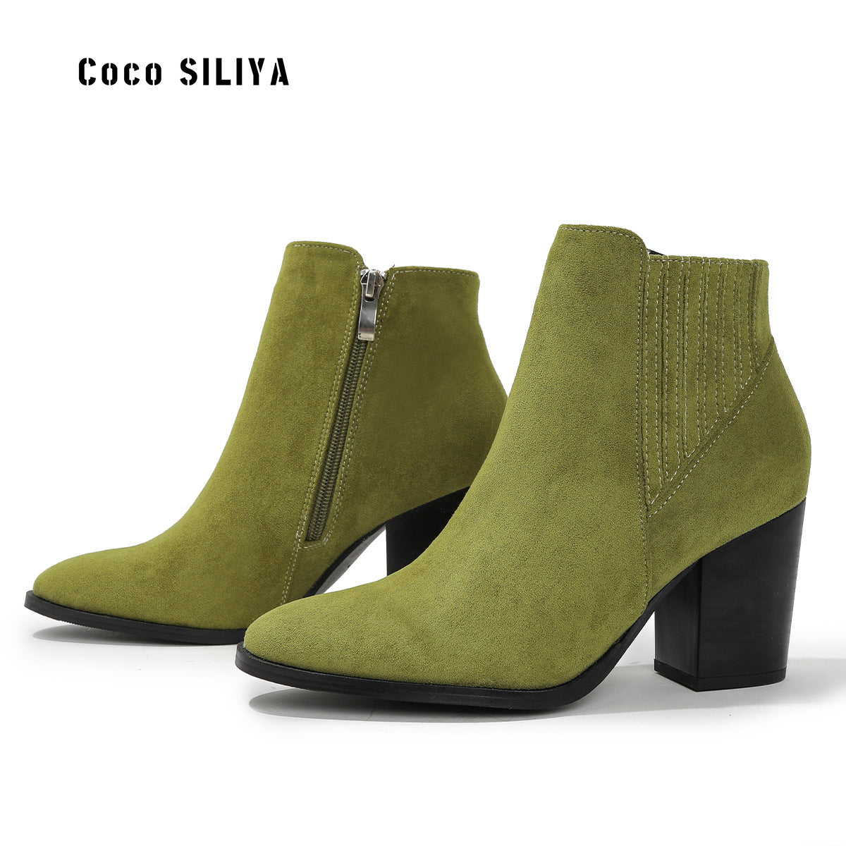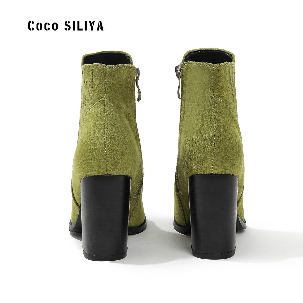 Autumn and Winter Short Boots Women's High Heel Fashion Martin Boots Short Barrel Thick Heel Side Zipper Nude Boots