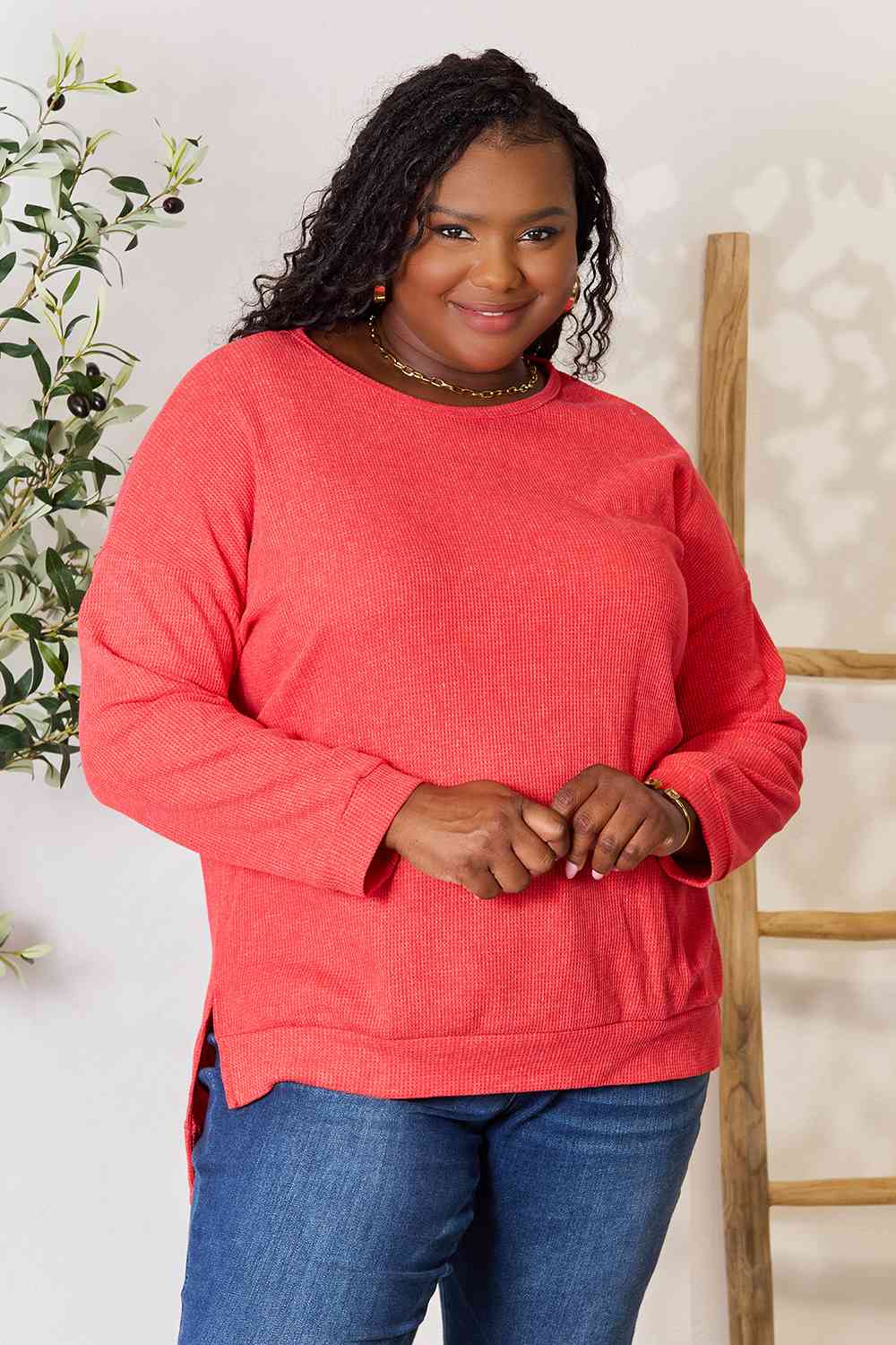 Basic Bae Round Neck Drop Shoulder Slit Sweatshirt