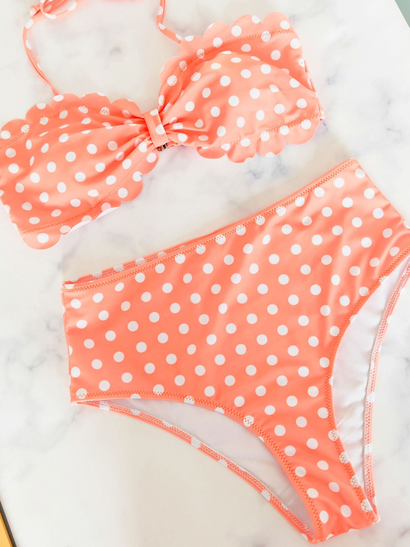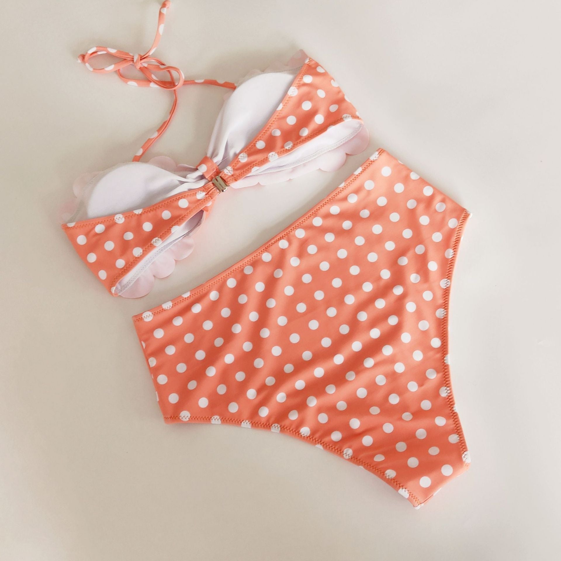 Cut Flowers Swimsuit Dot Lace Up Swimsuit