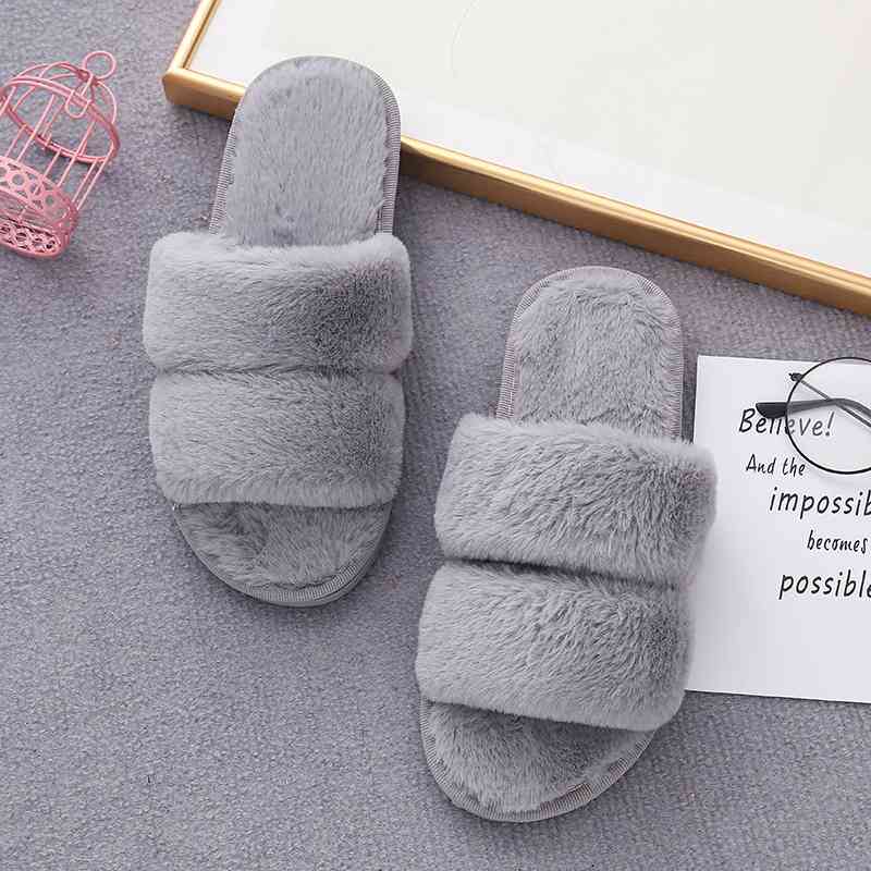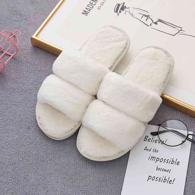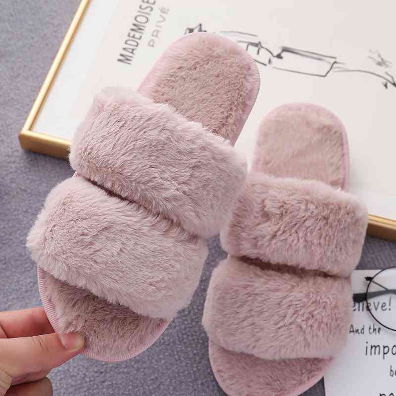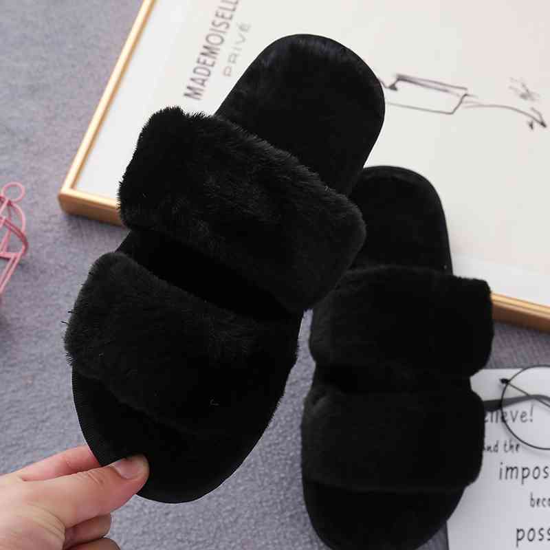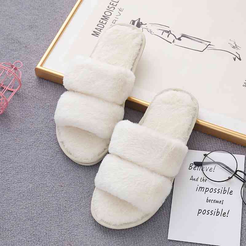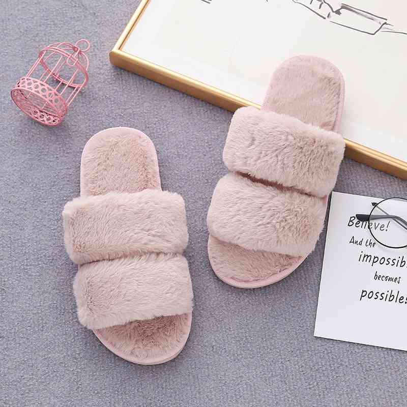 Faux Fur Double Strap Slippers