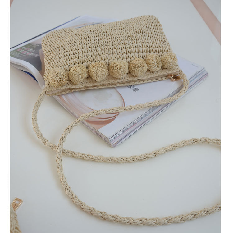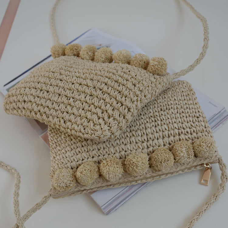 Hand-woven flowers straw bag