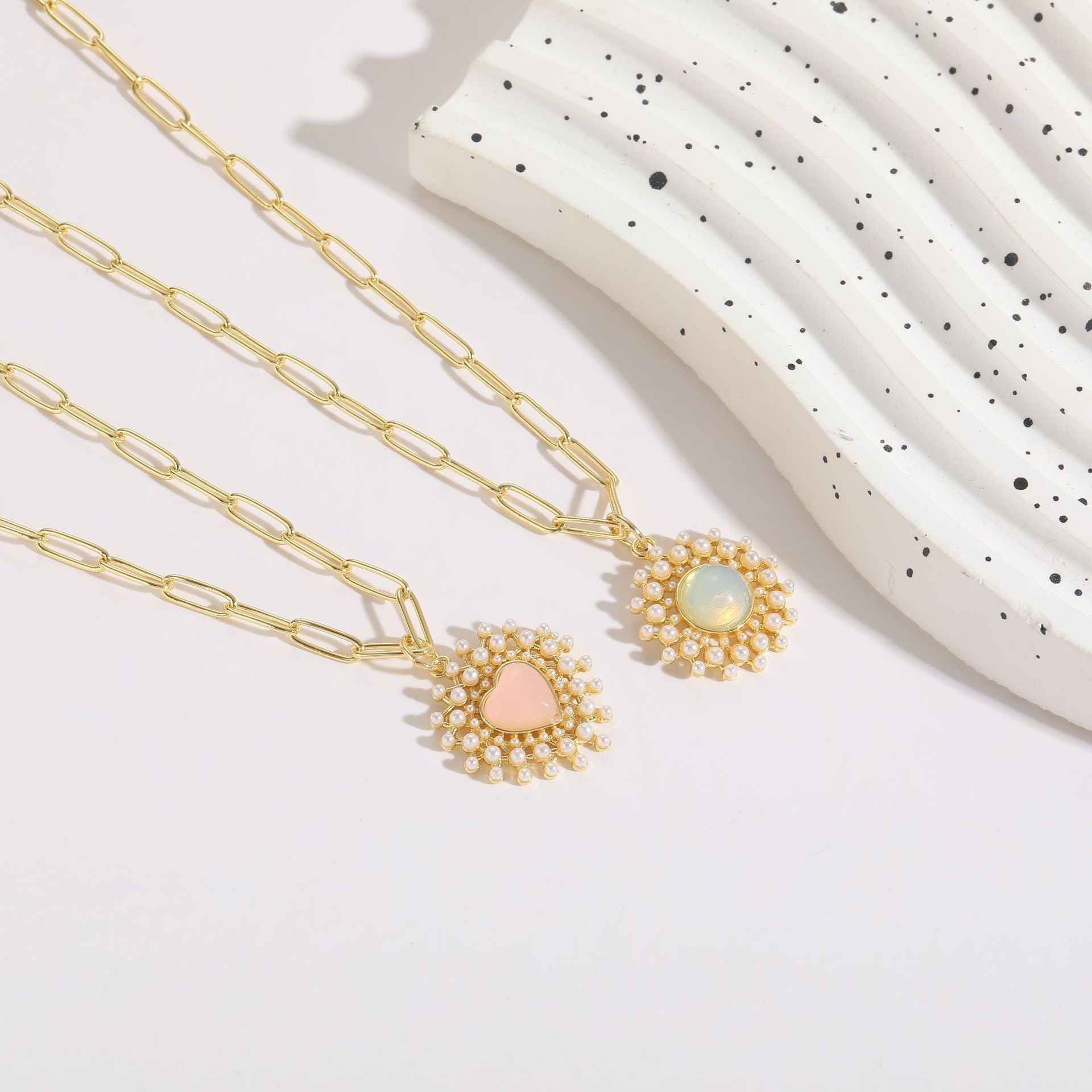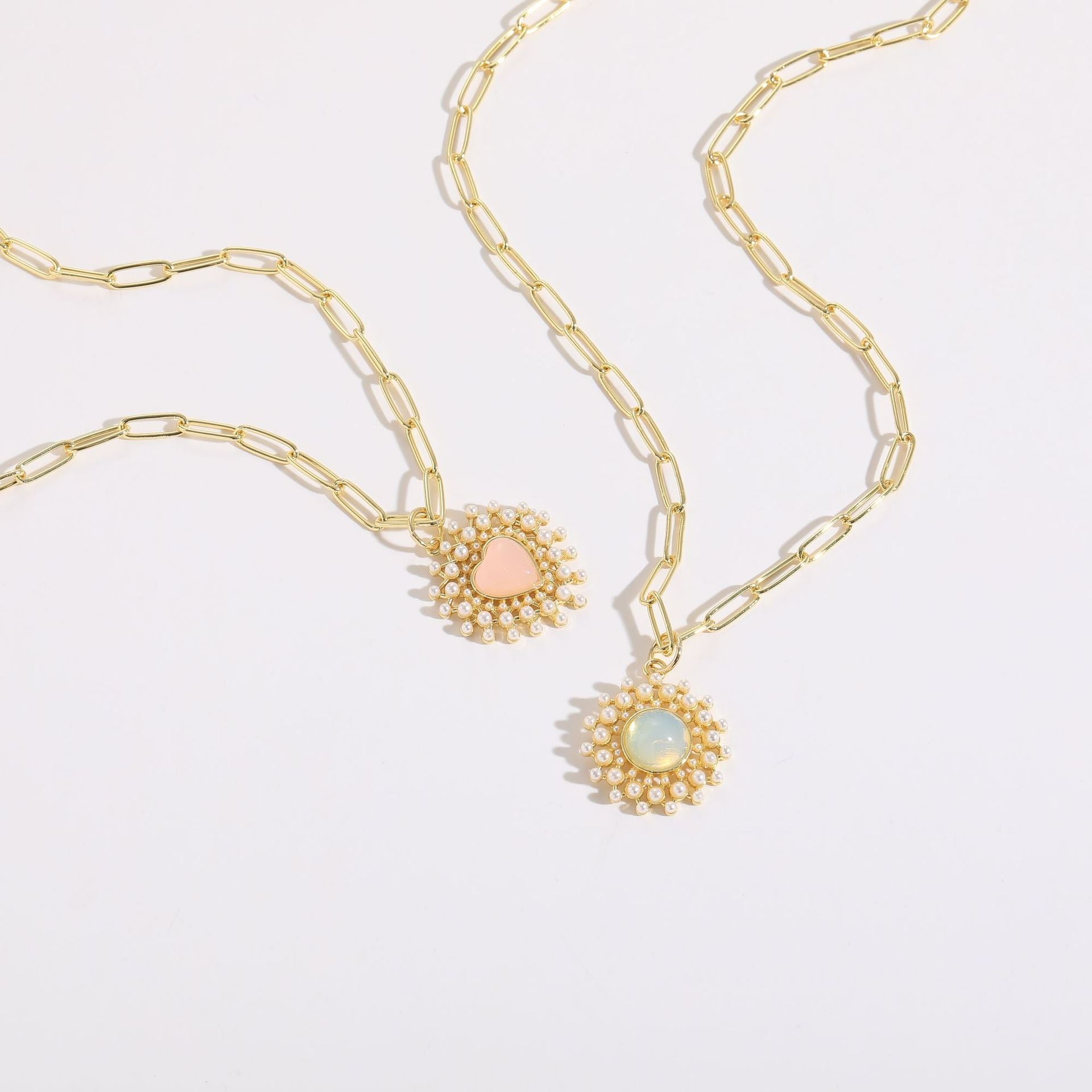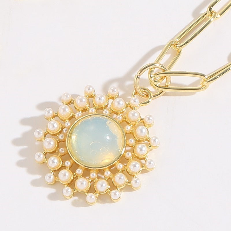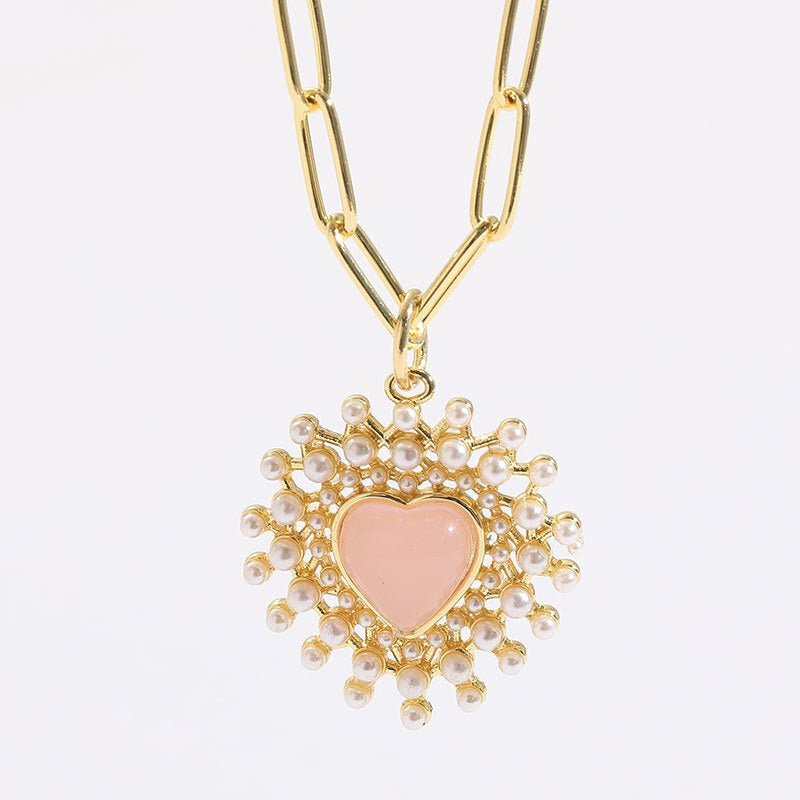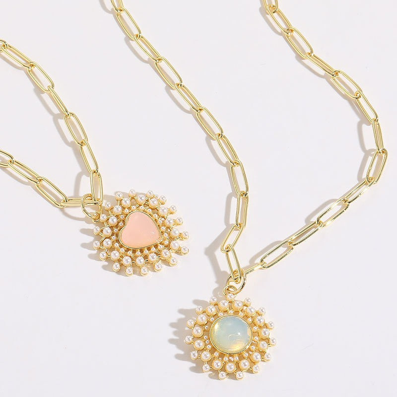 Love Glass Pearl Pendant Ins Style Simple Light Luxury Copper Plated 14K Real Gold Jewelry Necklace Jewelry