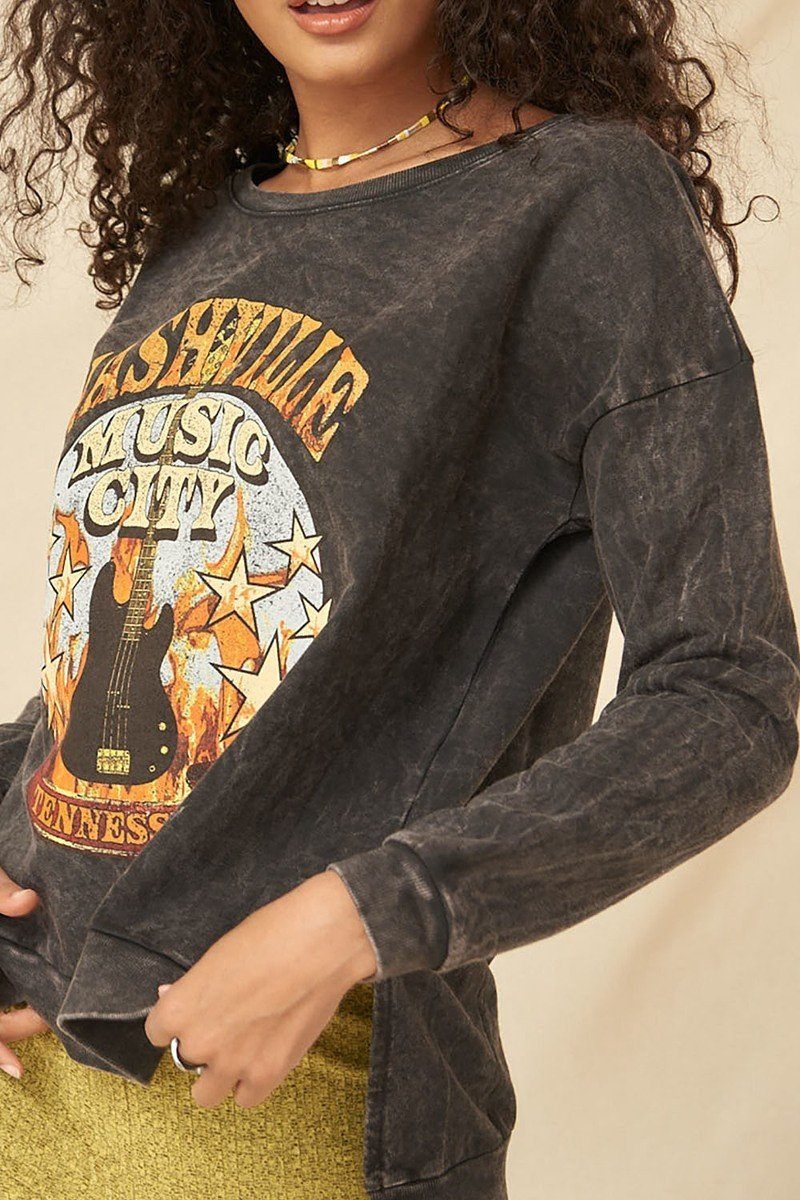 A Mineral Washed French Terry Graphic Sweatshirt