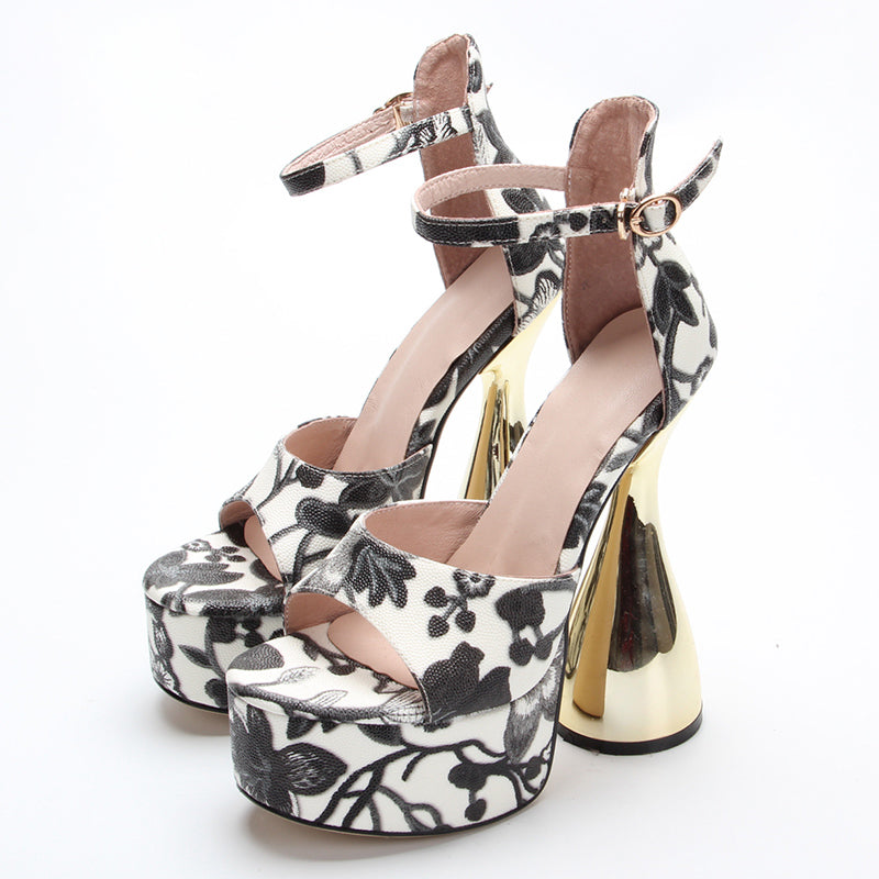 Sandals Women's New Summer Super High Heel Thick Heel Waterproof Platform Embroidered Buckle Fish Mouth 16cm High Heels