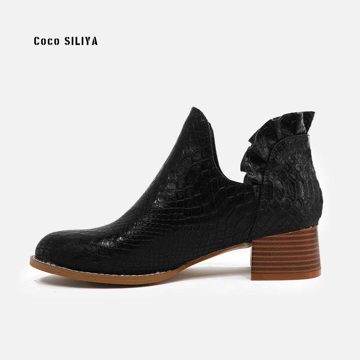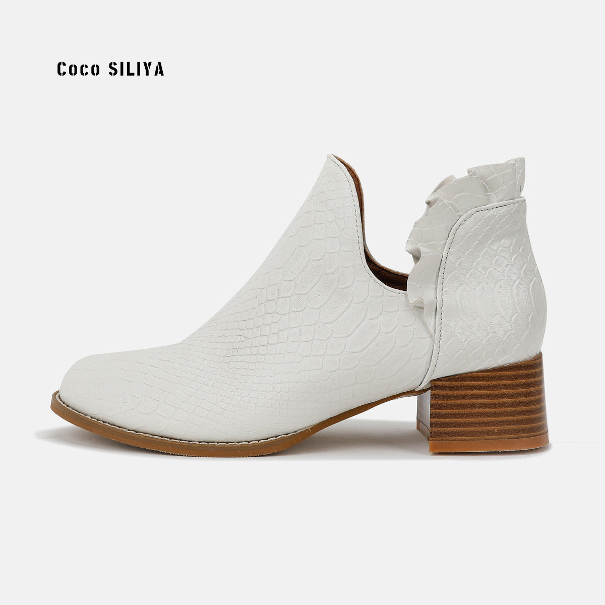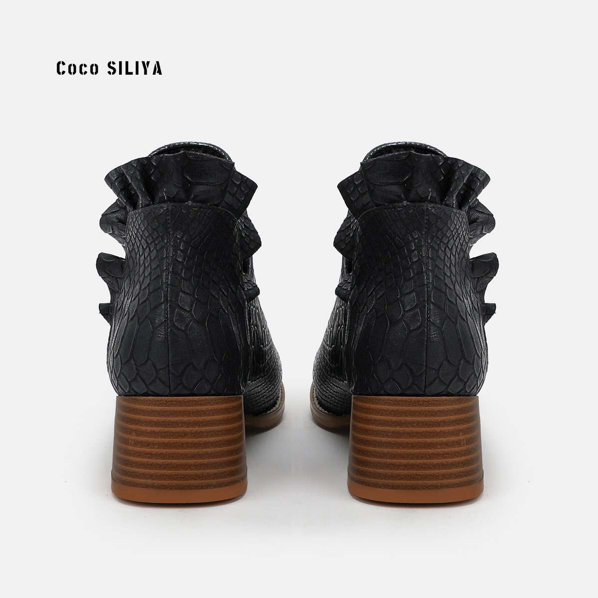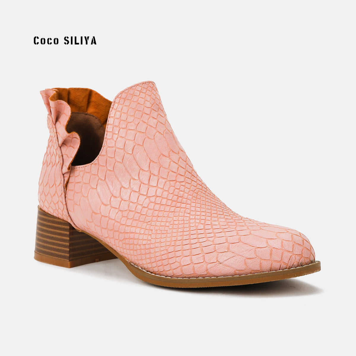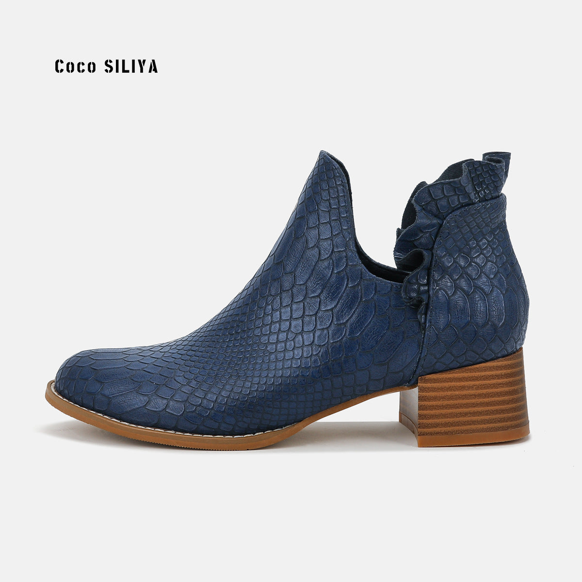 Snakeskin Boots Autumn and Winter New Large Women's Boots Round Toe Heavy Heel Martin Boots