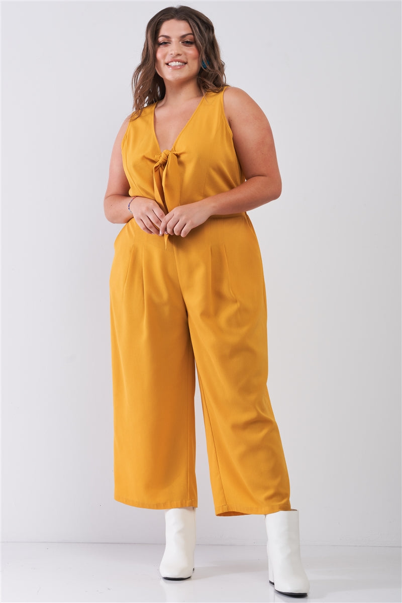 Plus Size Sleeveless V-neck Self-tie Front Detail Wide Leg Jumpsuit