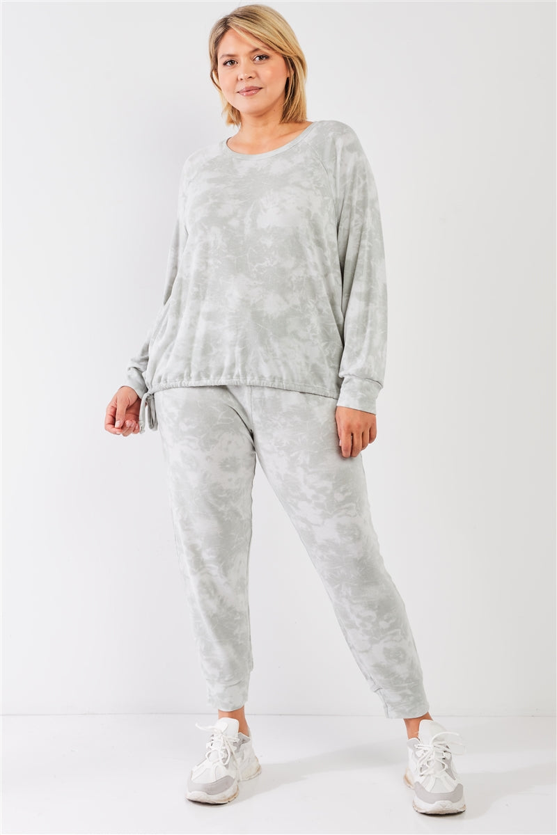 Plus Sage Tie-dye Bleached Effect High Waist Comfy Jogger Pants