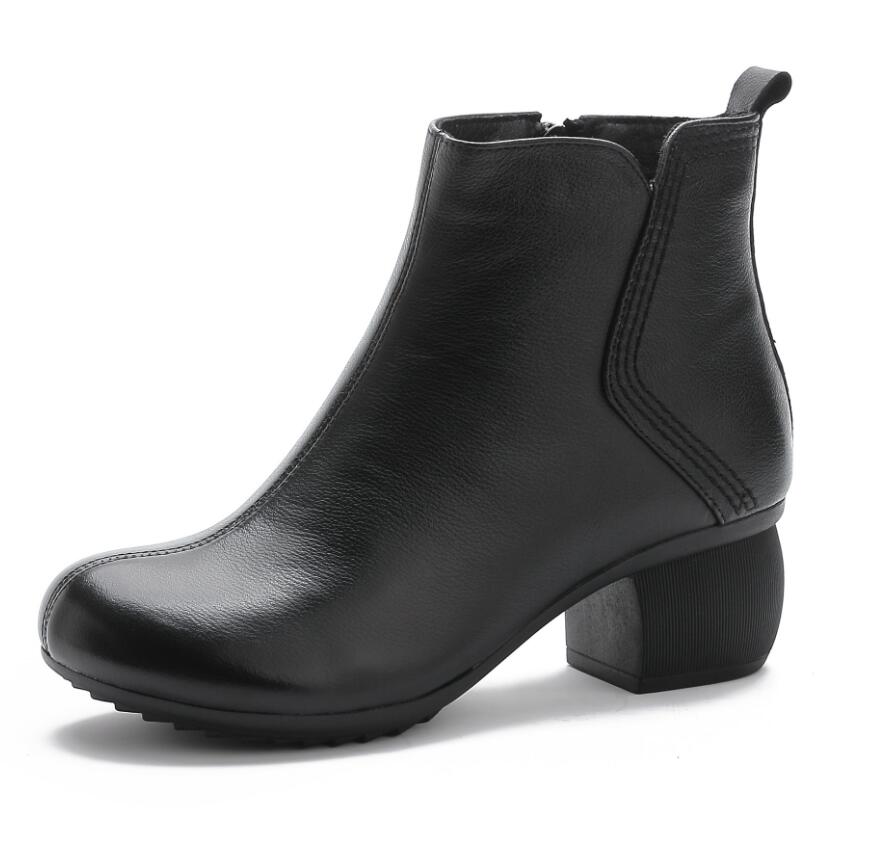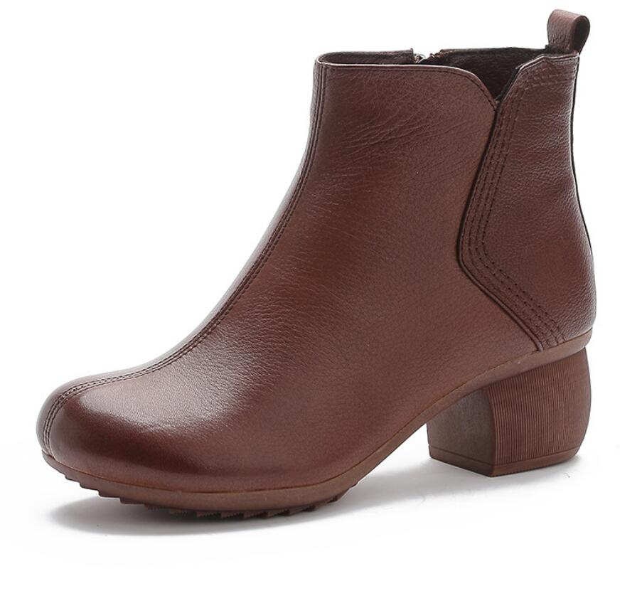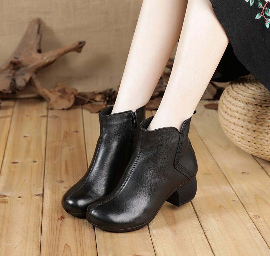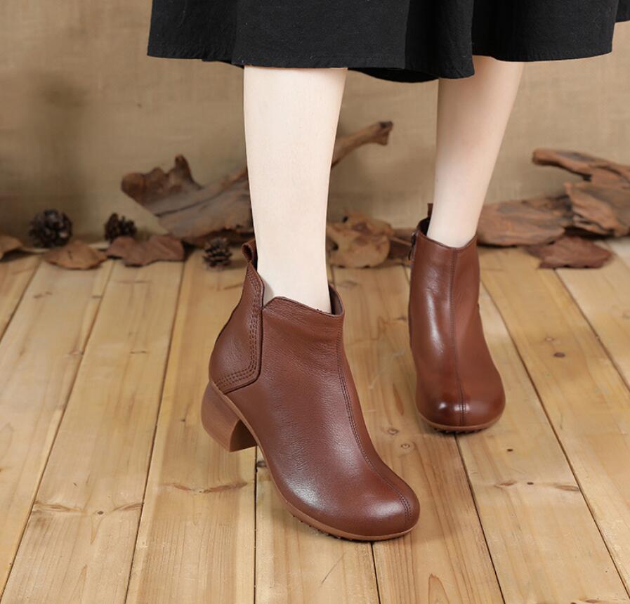 Vintage Style Genuine Leather Women Boots Flat Booties Soft Cowhide Women's Shoes