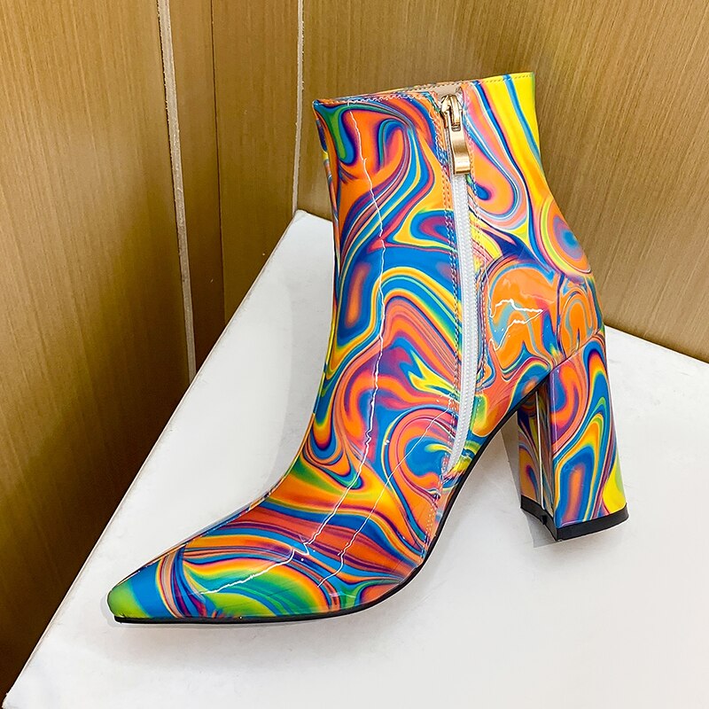 Women's New High-Heeled Autumn And Winter Thick Heel Pointed Toe Patent Leather Martin Boots